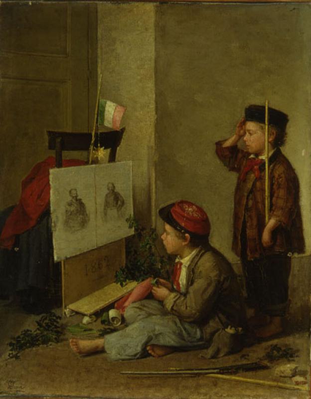 È un’infanzia che si muove in piena autonomia nello spazio pittorico, protagonista e non inerme, inconsapevole testimone degli eventi, quella che Toma dipinge nel piccolo olio barese, primo di una lunga serie di opere incentrate su questo tema. La ricostruzione di una nazione, è il messaggio che l’artista vuole trasmettere attraverso queste emulazioni giocose, passa anche attraverso l’infanzia e a quest’ultima è assegnato il compito di tramandare i valori patriottici alle generazioni future. GUARDA IL VIDEO
